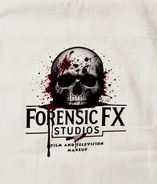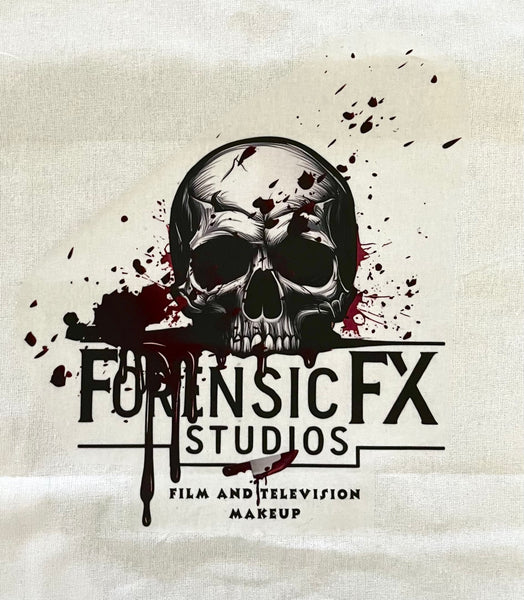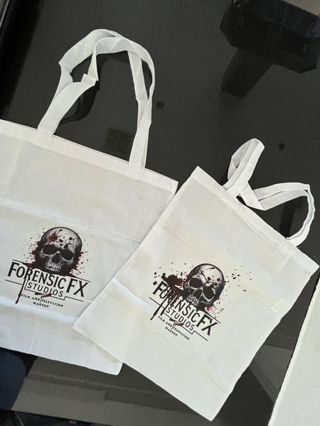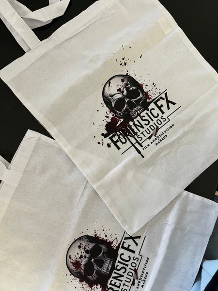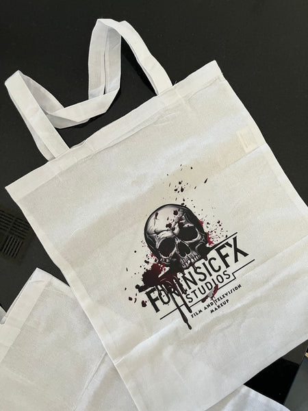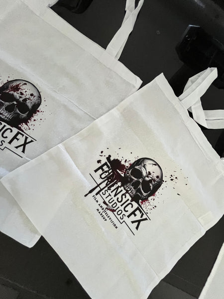 White Tote Bag with ForensicFX Studios Brand Logo Merchandise.
