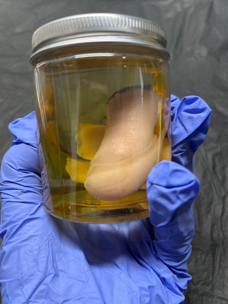 Elevate your horror makeup game with the Preserved Toes Jar Prop by ForensicFX Studios, an essential for any Medical, Halloween or Horror enthusiast. These realistic fake toes is perfect for creating gruesome effects as a display piece or gag gift, or in a horror film.